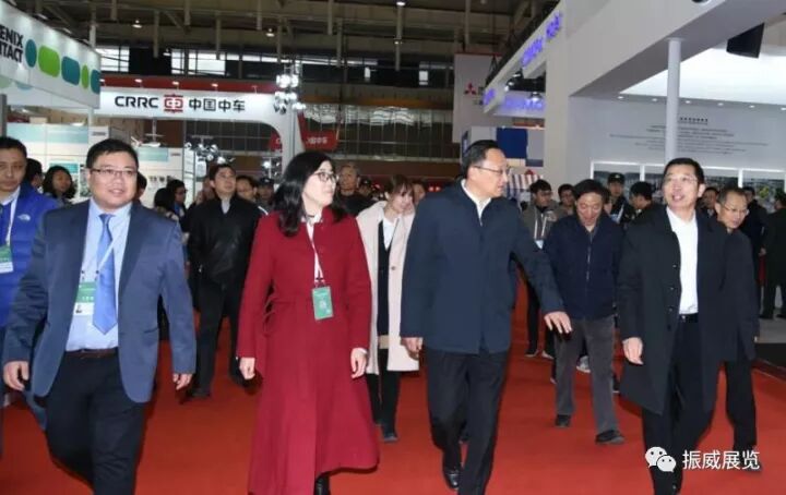 南京市市长缪瑞林(右二)、南京市经信委副主任乔翠聪(右一)在振威展览股份副总裁邓小辉(左一)、品牌中心总经理刘婷(左二)的陪同下参观展会